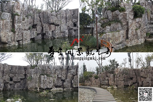 重庆G R C 假山石构件是一种预制的石材, 其背后有预留的钢筋焊点. 堆叠时需有附着的骨架—钢架结构、混凝土预留件结构、砖结构. 内部结构的设计是G R C假山成败的基础, 一定要按照所堆叠假山的各个部位的形状, 投影范围进行设计, 同时还要计算出G R C山石构件的重量, 进行基础设计。内部结构设计, 分室内内部结构设计和室外内部结构设计.