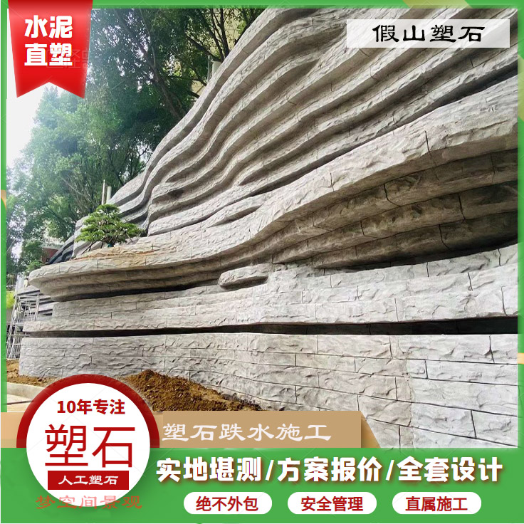 很多人担心假山会不会开裂、会不会塌?我们的答案是:钢筋混凝土直塑,让它稳如磐石。施工时先搭建钢结构骨架,再用钢筋网加固,最后浇筑特种水泥,层层包裹。这样的结构,抗震、抗风、抗沉降,几十年也不会出问题。水泥直塑的优势还在于,可以在塑形过程中随时调整造型,灵活性极高。哪怕施工到一半想修改设计,也能轻松实现。假山瀑布系统也能同步嵌入,水管、灯光都提前预埋,做到功能与美观统一。塑石假山不是堆砌石头,而是用钢筋混凝土“生长”出来的艺术品。稳固,是它最美的底色。